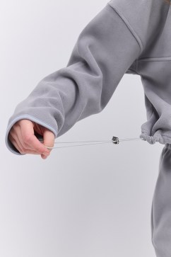 Женский вязаный костюм с юбкой и кроп-топом с длинными рукавами светло-серый