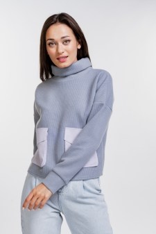 жіночий лонгслів, доповнений коміром-стійкою з розрізом. Ця модель пошита з м`якого, еластичного трикотажу в широкий рубчик. Краї низу у виробі прямі, рукави довгі. Високий комір пошитий з основного матеріалу, складеного вдвоє, та прикрашений невеликим розрізом спереду по центру. Завдяки лаконічному дизайну такий лонгслів легко впишеться у будь-який образ і як самостійний верх, і як нижній шар під об`ємні сорочки,