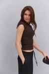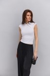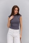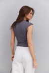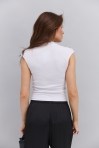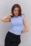 Женская вязаная футболка с открытыми плечами светло-персиковая