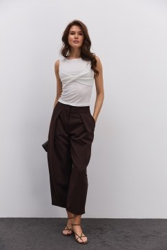 Женская вязаная майка розово-коралловая с полупрозрачным верхом