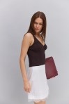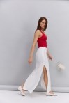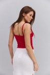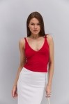 Женская вязаная майка розово-коралловая с полупрозрачным верхом
