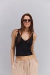 Кроп-топ без рукавов зеленый с вырезами спереди