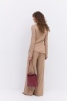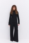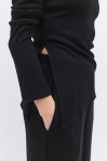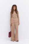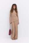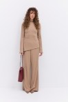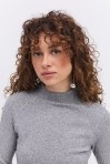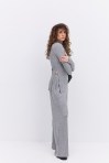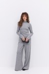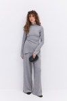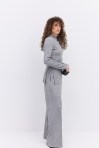 Женский вязаный костюм с юбкой и кроп-топом с длинными рукавами светло-серый