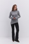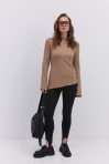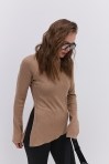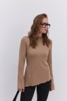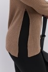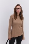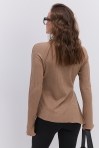 Женский вязаный свитер бежевый с воротником на пуговицах