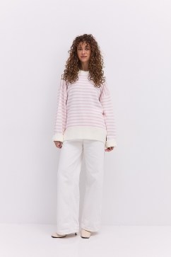 Женский вязаный свитер бежевый с воротником на пуговицах