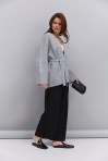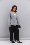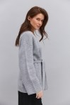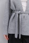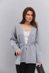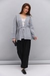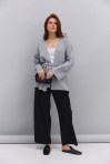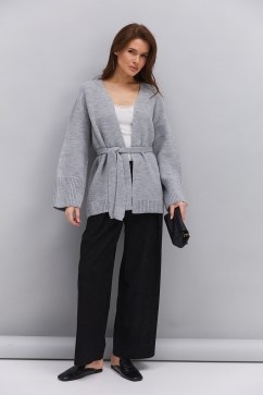 Женский вязаный кардиган оверсайз темно-серый с цветочными и геометрическими узорами