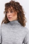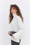 Женский вязаный свитер бежевый с воротником на пуговицах