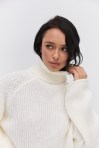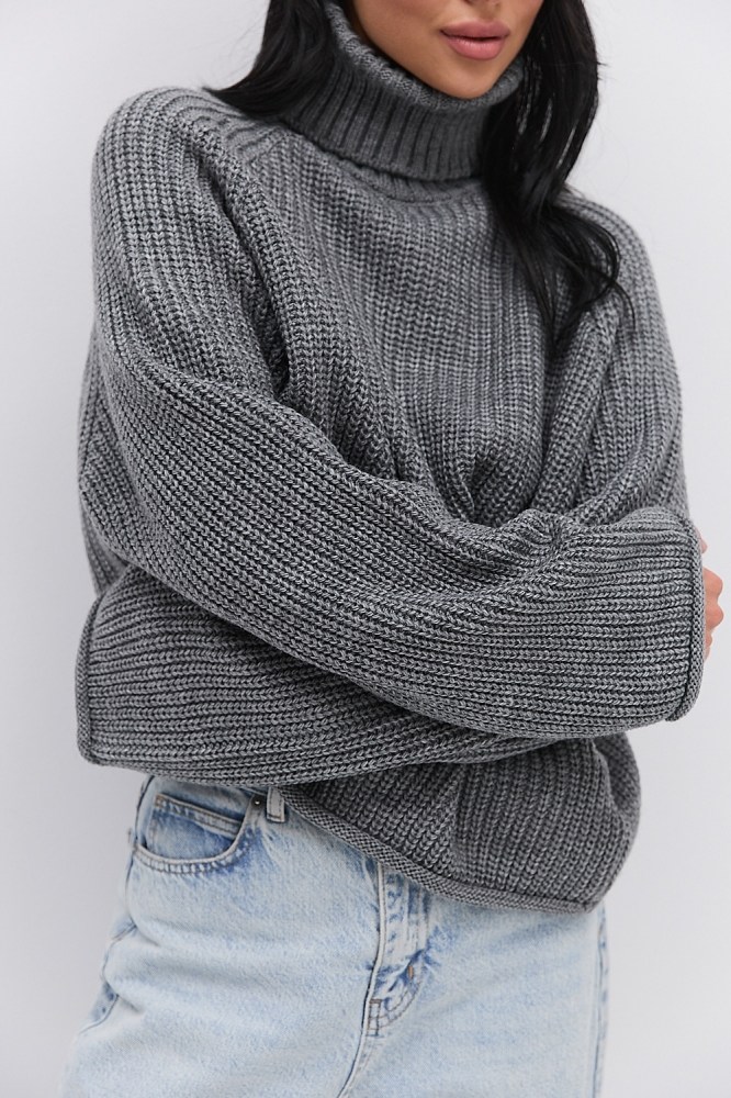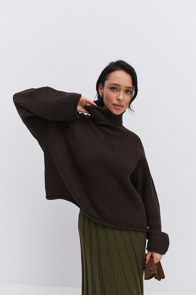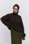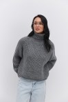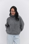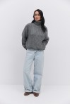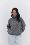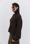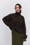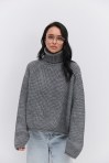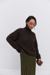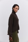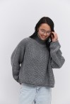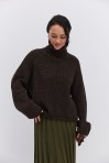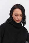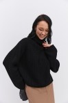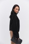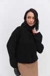 Женский вязаный свитер oversize черный с разрезом сзади на воротнике