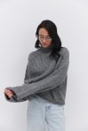 Укороченный вязаный свитер черный с разрезом сзади на воротнике