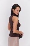 Льняной топ на широких бретелях темно-бежевый