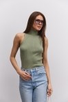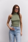 Вязаный кроп-топ без рукавов розово-коралловый
